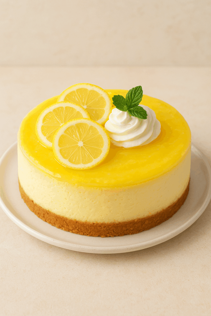 De Citroen cheesecake is een frisse taart met een perfecte balans tussen romig en friszuur. De taart heeft een stevige, knapperige bodem van biscuit. Daarboven ligt een romige cheesecakevulling, vol en zacht en op smaak gebracht met verse citroensap en citroenrasp. Dit geeft een lichte, frisse smaak zonder te overheesend te zijn. De cheesecake is verder gedecoreerd met verse citroenschijfjes en een slagroomtoef met blaadjes munt. De uitstraling is fris en elegant en is dus ideaal als lichte afsluiter na een maaltijd en perfect voor lente- en zomergelegenheden.