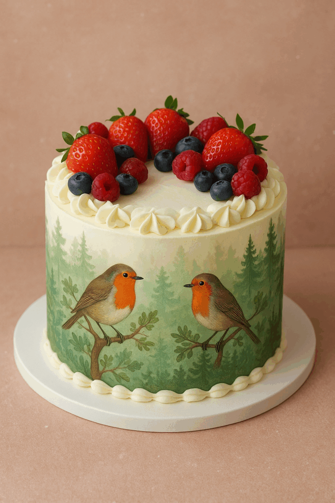 De luxe slagroomtaart met fruit en print is een frisse, elegante taart die perfect is voor feestelijke momenten. De taart bestaat uit zachte lagen cake, met daartussen lichte, romige slagroom en een fruitvulling, van bosvruchten. De buitenkant is strak afgesmeerd met zachte slagroom en mooi gedecoreerd met vers fruit en spuitjes slagroom. Ook een gedecoreerd en eetbare print op de buitenkant. Dit oogt heel stijlvol. Deze taart is daarom ideaal voor verjaardagen, jubileums en andere speciale gelegenheden.